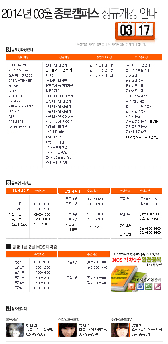 2014년 3월 4월 개강안내문