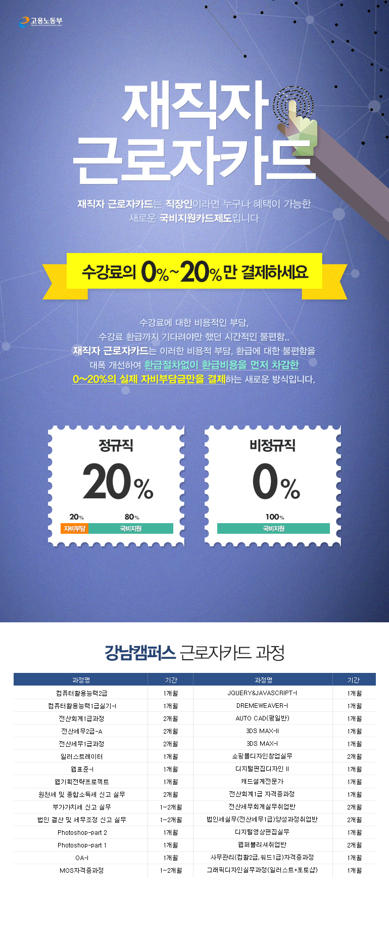 수강료 걱정없는 <재직자 근로자카드> 과정안내